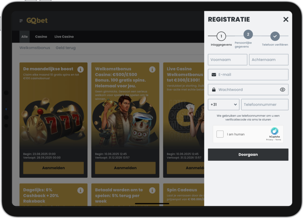 Het verkrijgen van een bonus bij GQBet is eenvoudig en rechttoe rechtaan. Hier zijn de algemene stappen en principes die jij moet volgen om onze GQ bet casinobonussen te ontvangen: